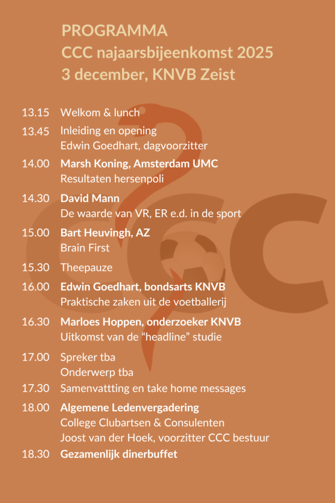 Op woensdag 3 december 2025 wordt het najaarcongres georganiseerd voor leden van het College voor Clubartsen en Consulenten Betaald Voetbal.
