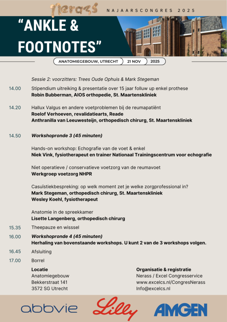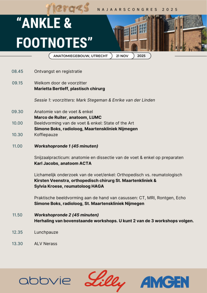 Op vrijdag 21 november 2025 organiseert Nerass een hele dag binnen het thema “Hands On Foot & Ankle”.