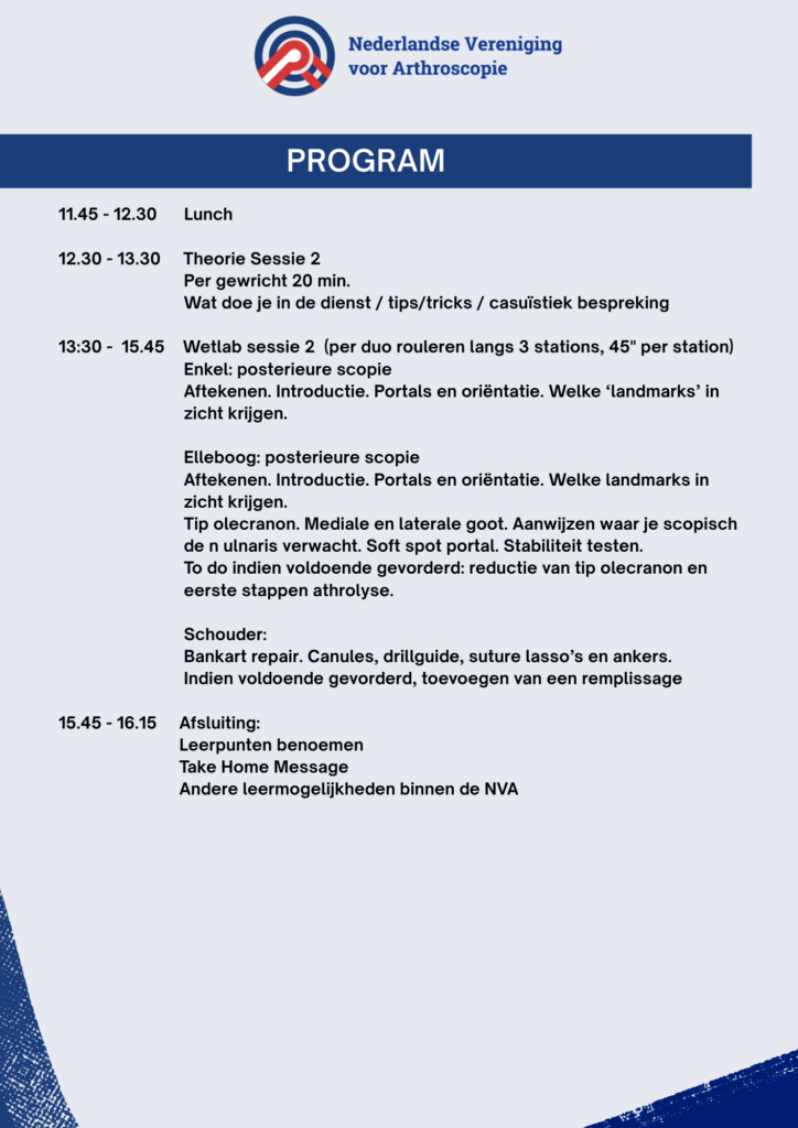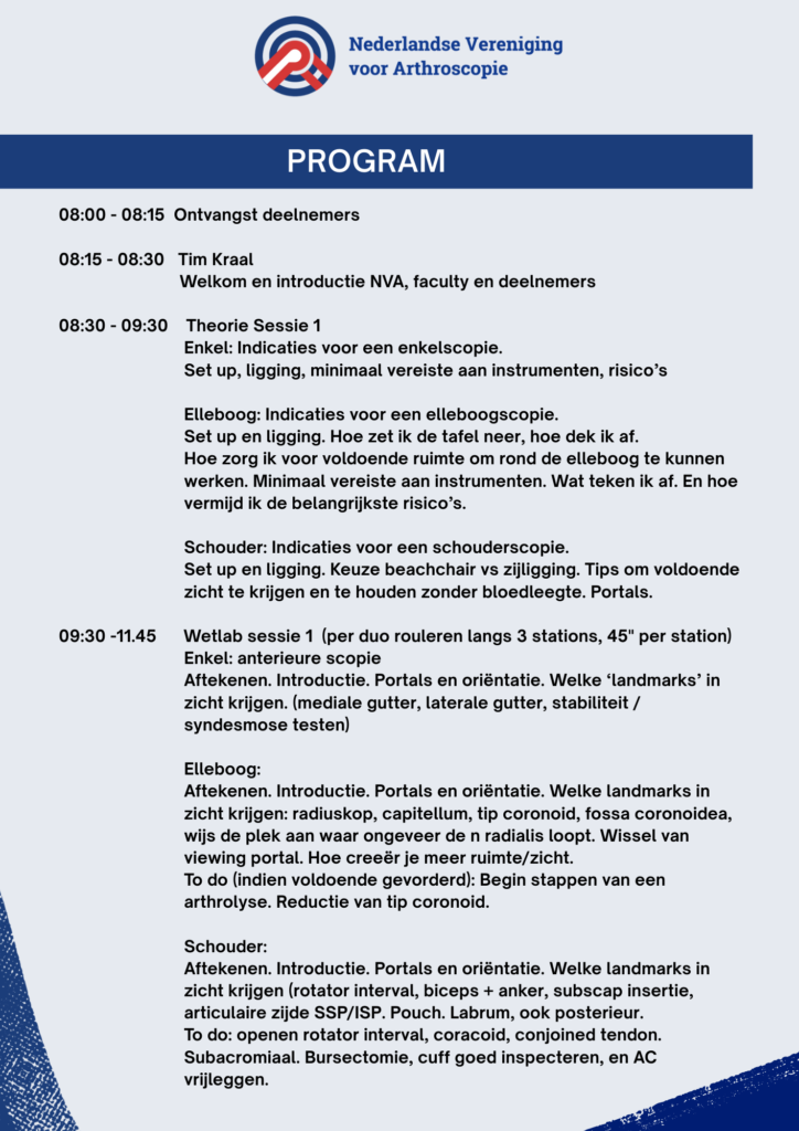 Het is helaas niet meer mogelijk om u in te schrijven voor de NVA Basiscursus Arthroscopie Knie.