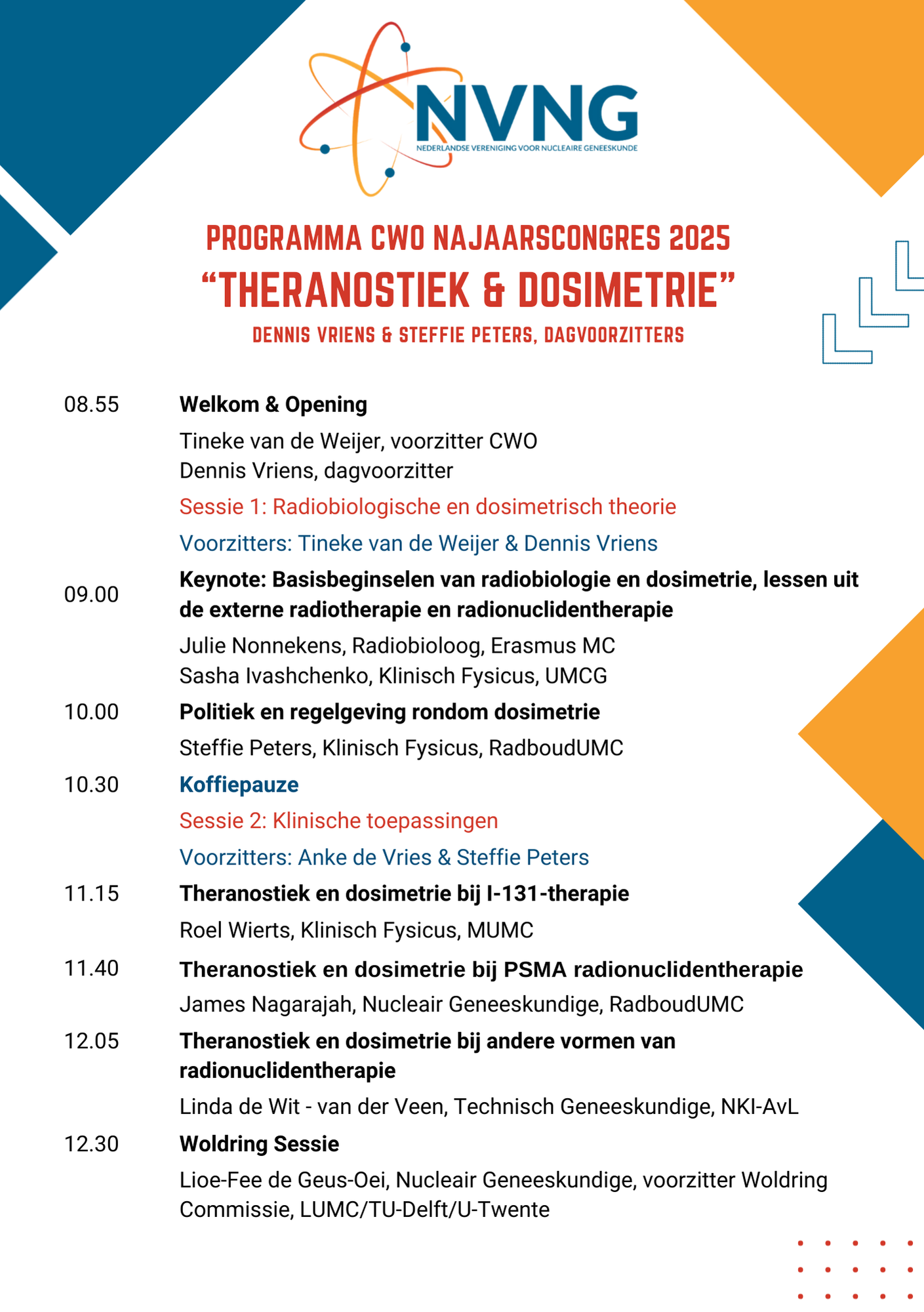 De Nederlandse Vereniging voor Nucleaire Geneeskunde (NVNG) is opgericht in 1968 en heeft een multidisciplinair karakter. Haar leden zijn overwegend afkomstig uit de disciplines geneeskunde, farmacie, fysica en (radio)chemie.